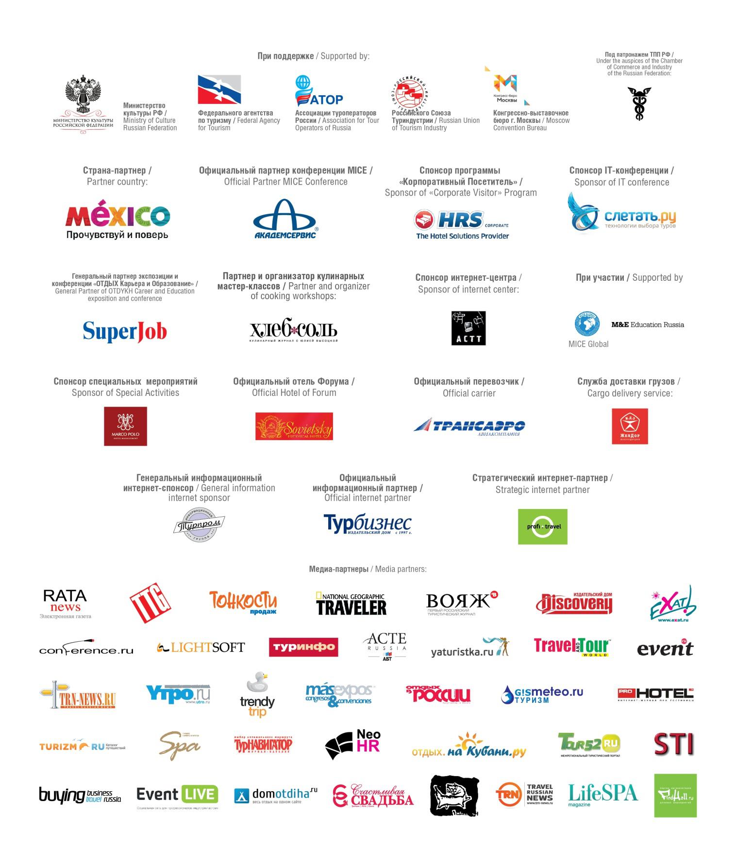 Министерство культуры Российской Федерации, Торгово-промышленная палата Российской Федерации, Федеральное агентство по туризму, Российский Союз Туриндустрии, Ассоциация Туроператоров России, Конгрессно-выставочное Бюро г. Москвы.